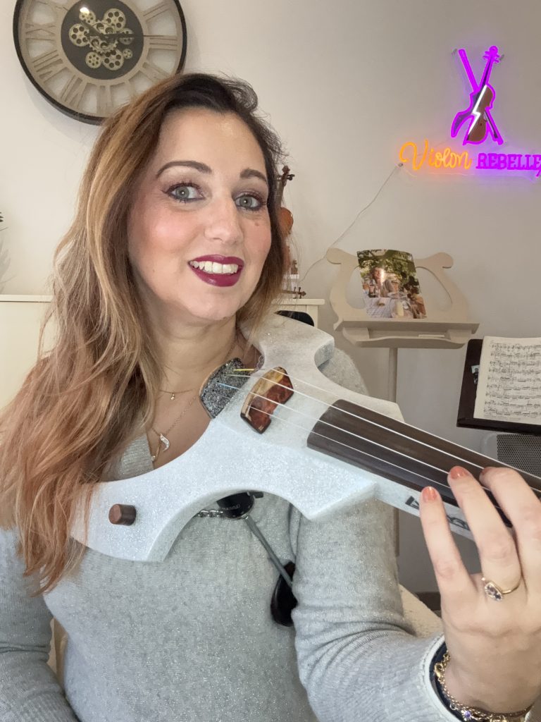Pour cette version, j’ai joué Titanium au violon électrique Scorpion. La vidéo alterne entre deux univers visuels complémentaires : mon home studio et le live lors du Noël Solidaire, afin de transmettre l’énergie de la scène et du partage. Ce choix montre que Titanium au violon électrique fonctionne aussi bien dans un cadre pédagogique qu’en situation de concert.